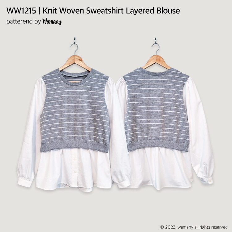 [실물패턴] 니트우븐 스웻셔츠 레이어드 블라우스 패턴 (WW1215)