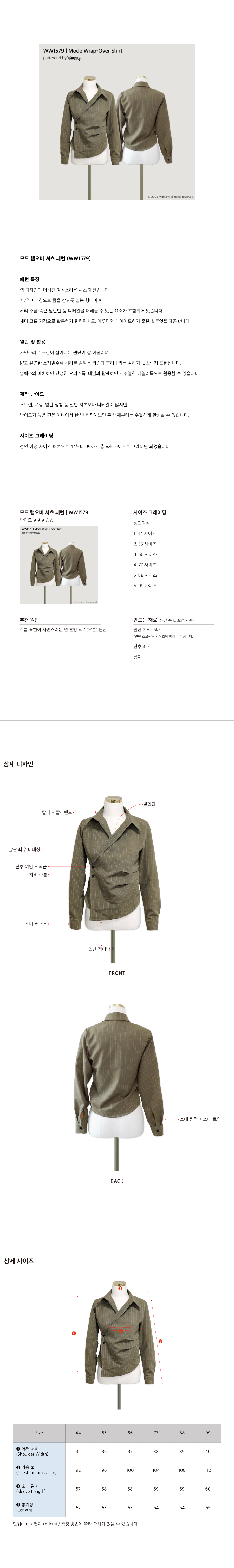 [실물패턴] 모드 랩오버 셔츠 패턴 (WW1579)