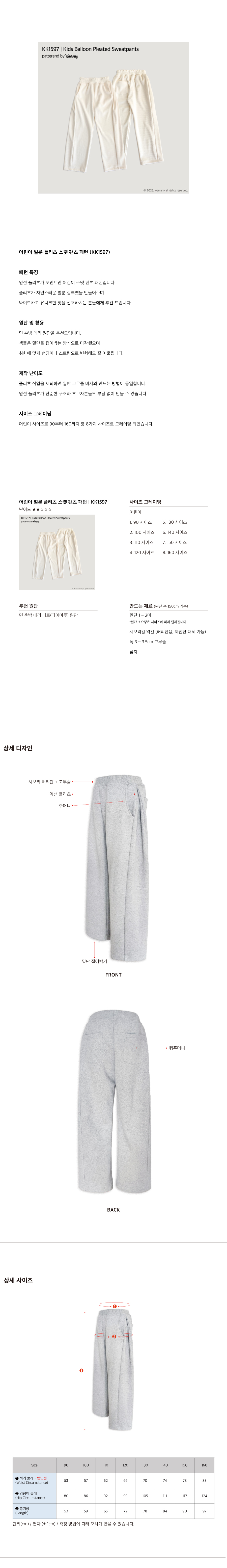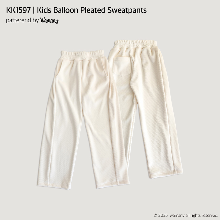 [실물패턴] 어린이 벌룬 플리츠 스웻 팬츠 패턴 (KK1597)