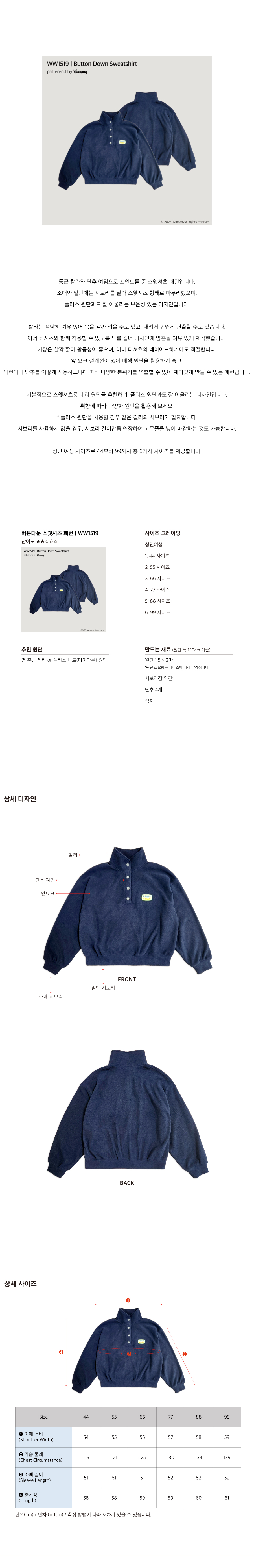 [실물패턴] 버튼다운 스웻셔츠 패턴 (WW1519)